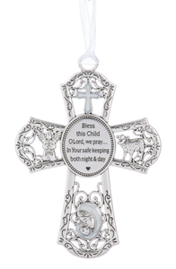 Ornament - Cross - "Bless this child..." - Multiple Colors Available
