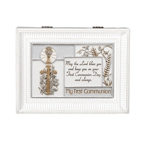 Music Box - First Communion - Song: Ave Maria - White Finish with Ornate Lid