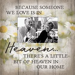 Memorial Picture Frame - "Because someone we love is in Heaven..." - Daisies Motif - 4" X 6" Photo - 9.5" Square Frame