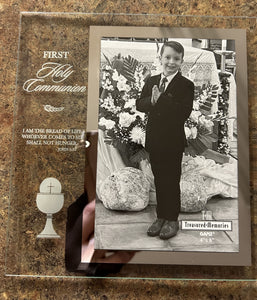 Picture Frame - First Holy Communion - Glass with Mirror Frame - 4"X6" Photo - 9.5"X9.5" Frame