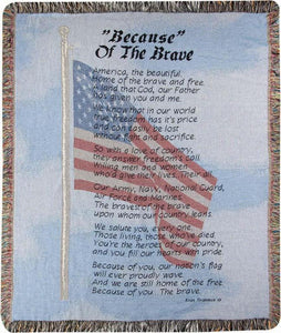 Throw/Tapestry - Because of the Brave - 100% Cotton - 50" X 60"